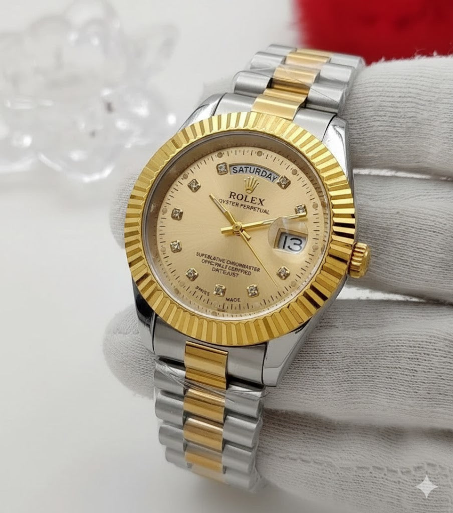 RLX – 2 Tone -Day & Date-Stainless Steel With Gold Dial